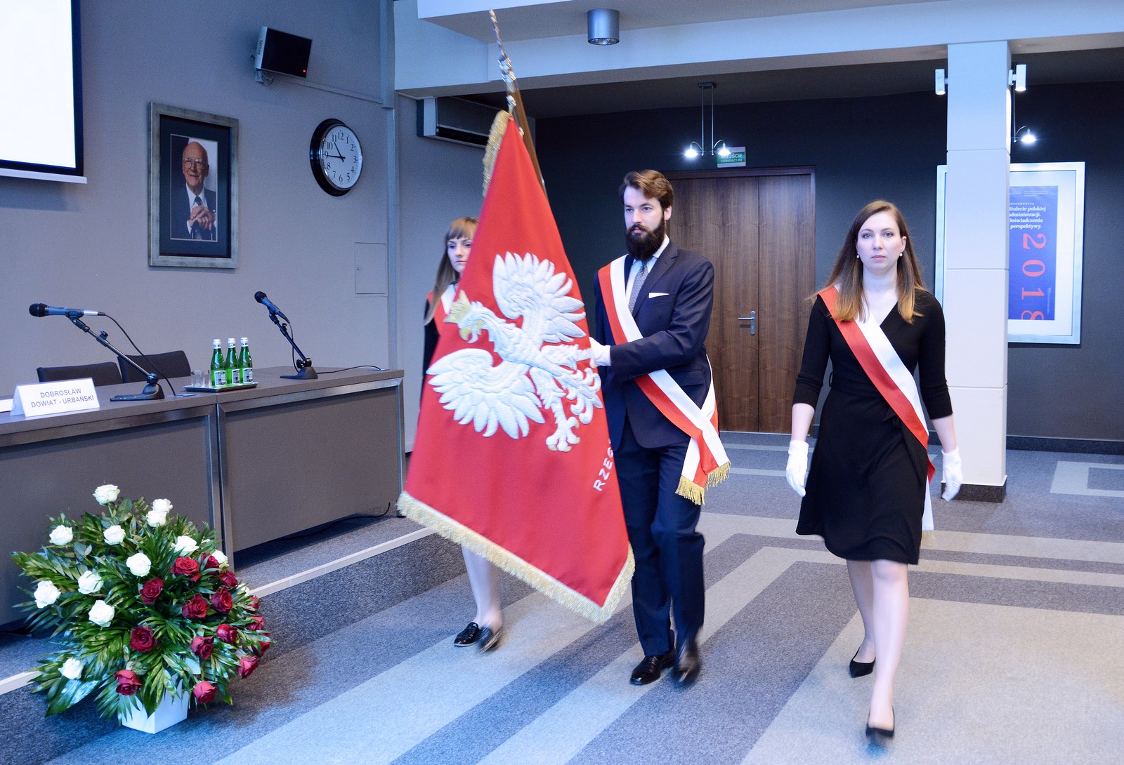 Uroczystość poprzedziło złożenie kwiatów pod tablicą upamiętniającą Patrona Szkoły - Prezydenta Rzeczypospolitej Polskiej Lecha Kaczyńskiego.